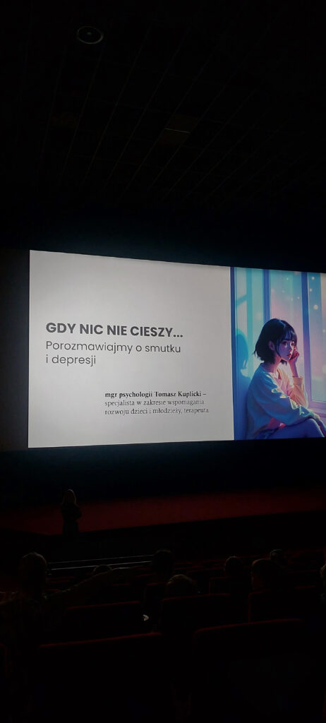 Dnia 22.10.2025 r. klasa 7a uczestniczyła w seansie filmowy „Larp. Miłość, trolle i inne questy”. Przed seansem uczniowie wysłuchali przemówienia psychologa nt. depresji, jej objawów oraz sposobów pokonania gorszych chwil.