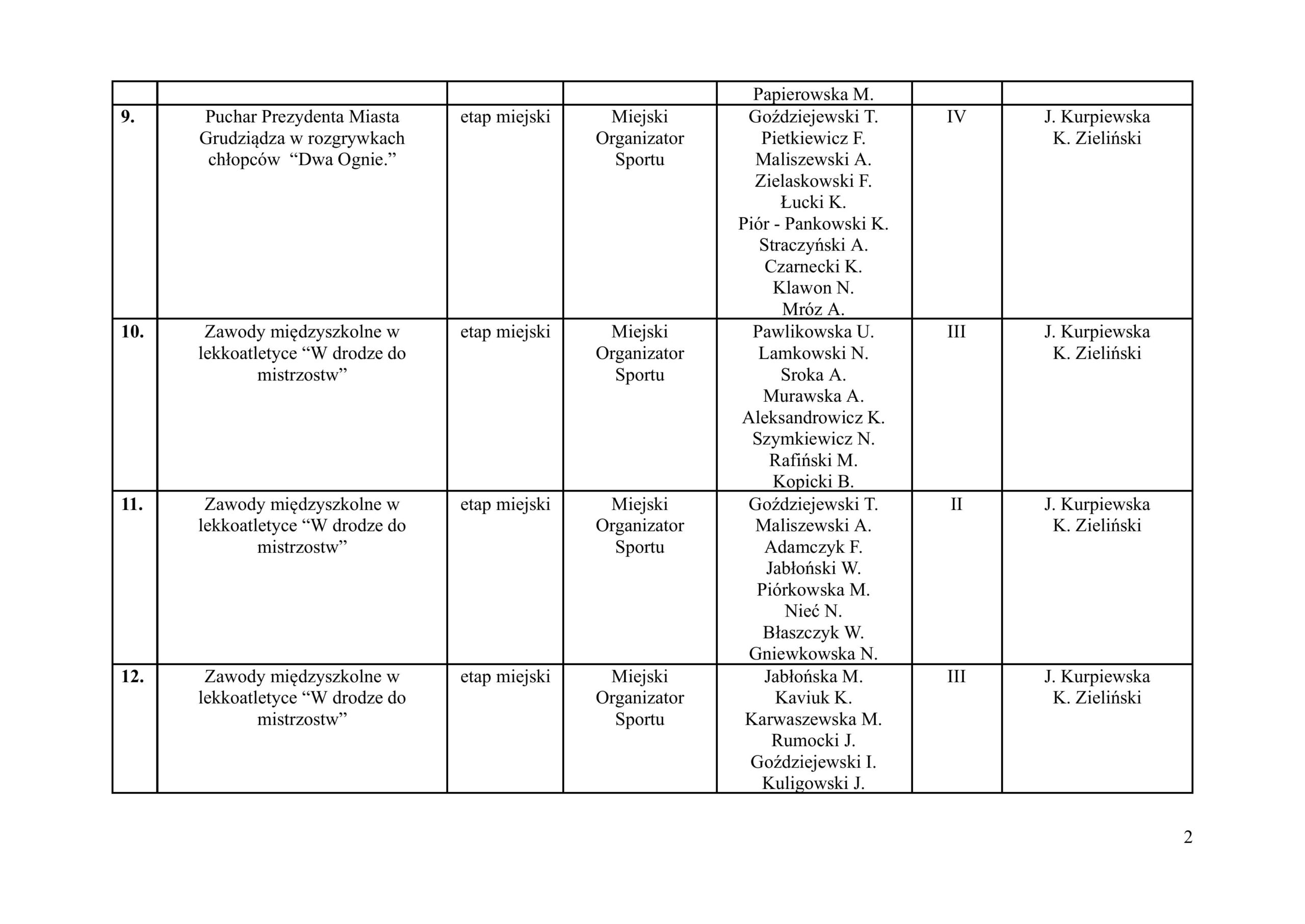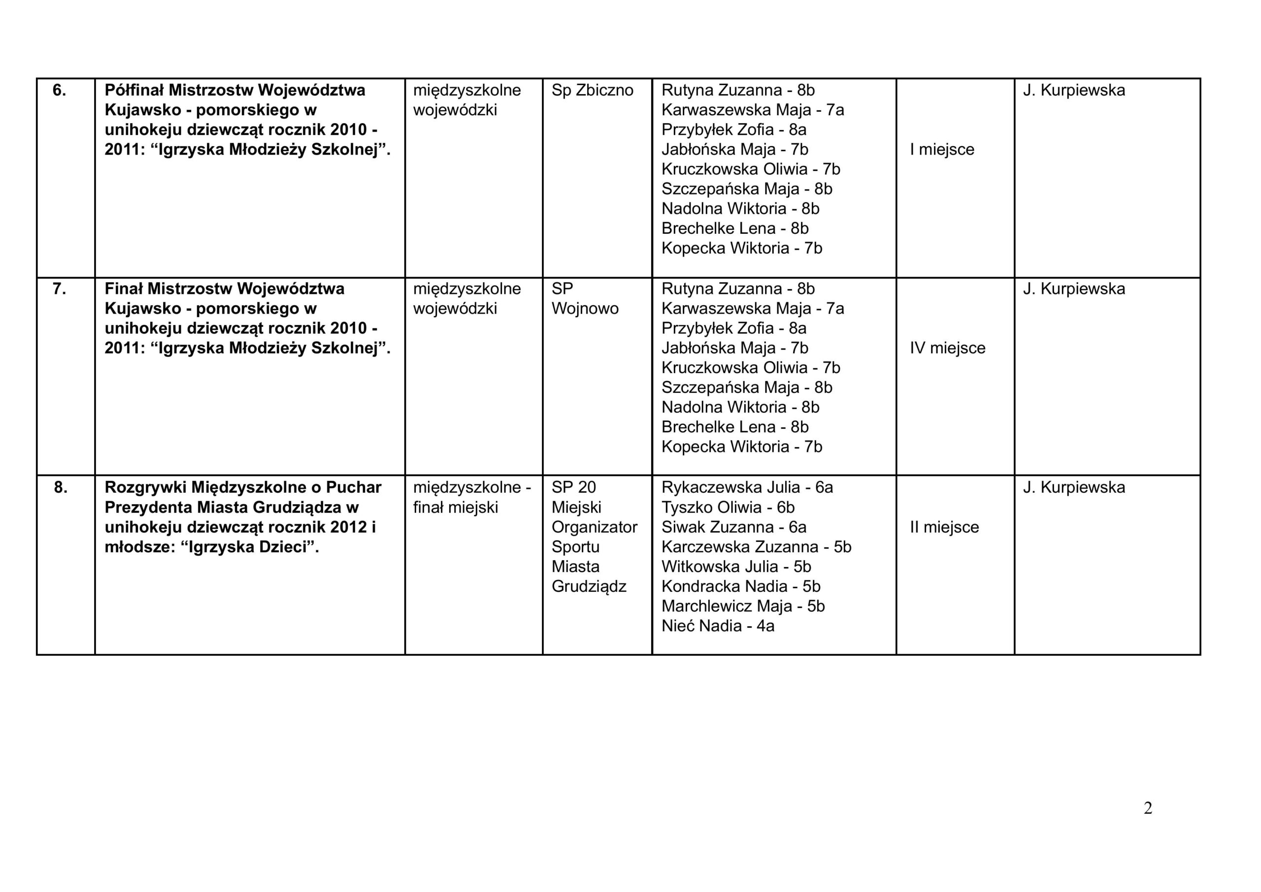 opiekunowie: Kamilla Szkudlarek, Wioleta Nawrocka